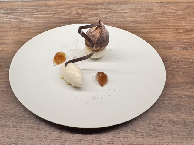 別のコースで出ていたモンブランのデザートも美味しそうなので追加で頂いたら、カリッと硬そうな見た目と異なり、もっちりと柔らかくて、これまた美味しい!!