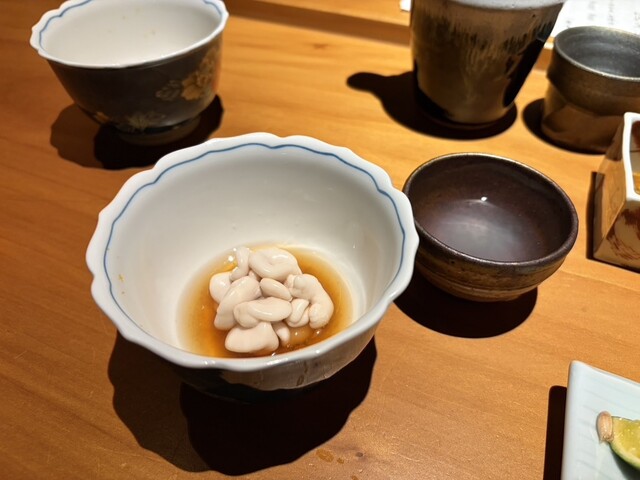 木の温もりを感じる落ち着いた店内で、前菜から始まり、約14品の料理と約10貫の握りが続く構成。