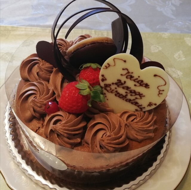 妻の下知で、独りで行って来ましたよ。 溺愛の孫2人の『バースデイケーキ』を受け取りに。 妻には内緒で、忘れずに「マカロン」も秘かに買いました!