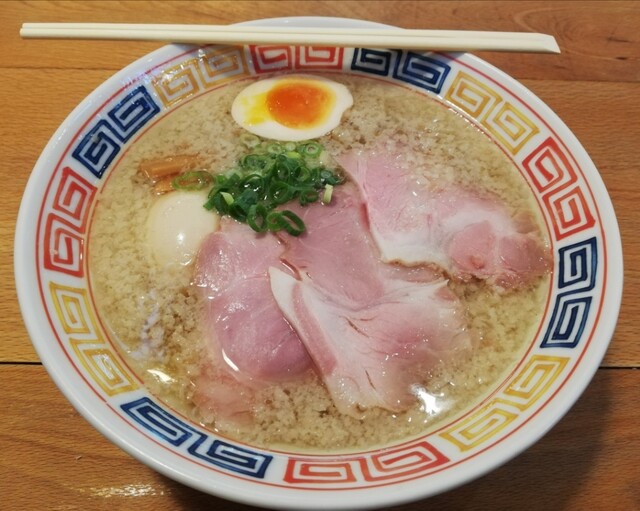①鶏と豚の清湯に、地元業者さんから仕入れた豊富な「伊吹いりこ」から抽出した出汁が加えられています。