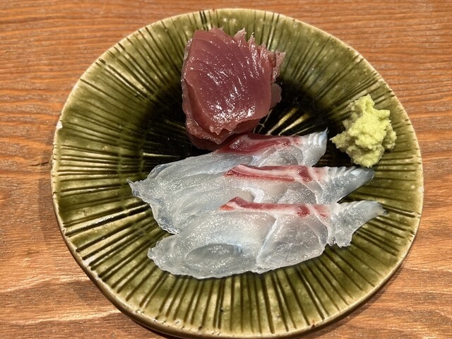 「カツオと淡路の鯛、プラス1,800円でウニがトッピングできます(ここで初めて値段が出た)」