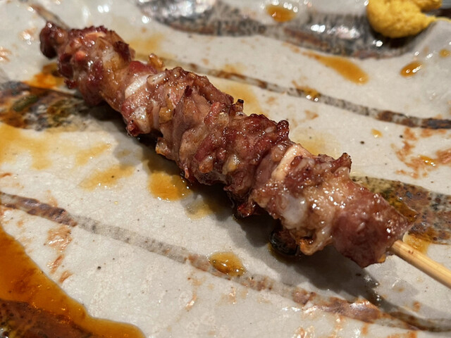 ナンコツ○、白大腸、ツクネ、タン◎、ハツ、もうお腹いっぱいなのだが、キャビアの手巻き、〆は麺、デザート。トドメを刺される(笑)。