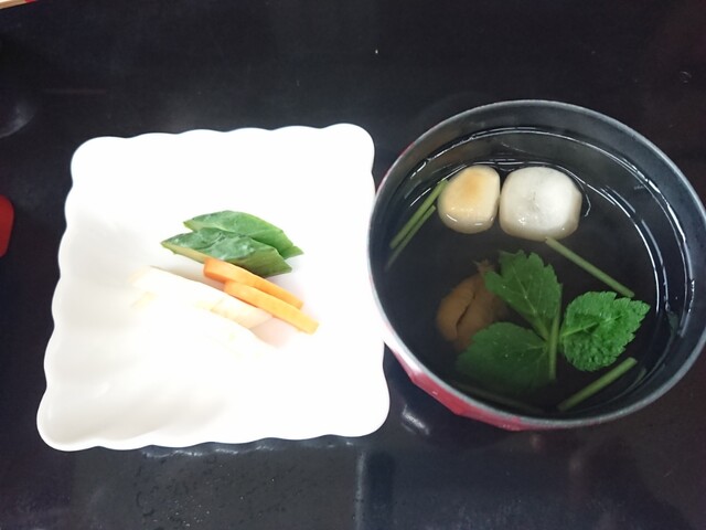 お新香もお吸い物も安定の美味しさ。