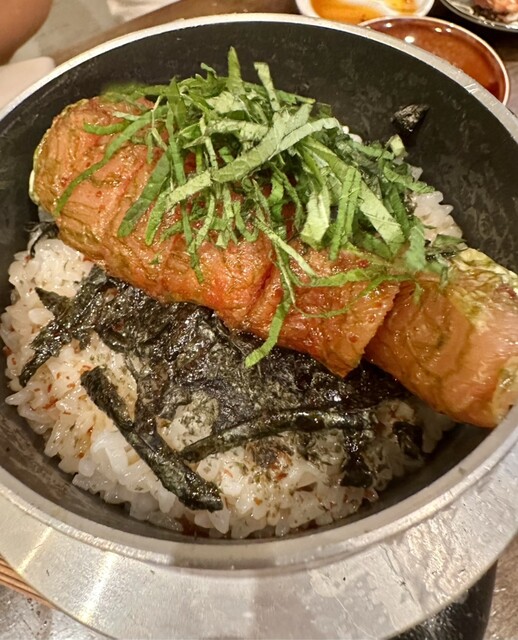メニューを見て、余裕があれば単品も頼もうと言っていたのですが、〆の明太子の釜飯でお腹いっぱいに。