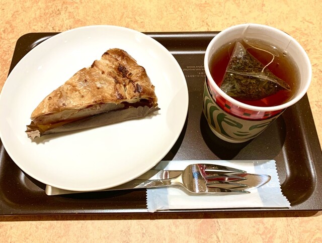 キラリナの開店10時前だったので、1階エレベーターから9階へ。エレベーターを降りるとすぐにスタバがあり、広くてポップで明るい店内に驚きました。奥にも席があり、そちらはシェアラウンジで有料とのことでしたが、普通にスタバだけの席もたくさんありました。平日だったからか混んでおらず、店員さんも新人さんといった感じもなく、スムーズに購入。毎年楽しみな青森県産アップルパイと最近ハマっているジョイフルメドレーのストレートを頂きました。アップルパイは、自宅で食べる時は冷やして食べるのですが、店内で頂くときは温めてもらいます。温かいカスタードとりんごの優しい甘さに癒されます。ほんのり酸味のあるブラックティーとウーロン茶を合わせジャスミンとアプリコットの風味のジョイフルメドレーがよく合います。吉祥寺はスタバが5店舗ほどありましたが、いつも混んでいて諦める時もあったので、新たに店舗が増え嬉しい限り。しばらくは混むかもしれませんがオススメです。アップルパイは期間限定ですお早めに。
