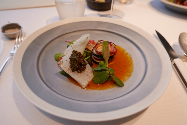(この鯛、めちゃくちゃ美味しい!!ソースとの相性バッチリ)