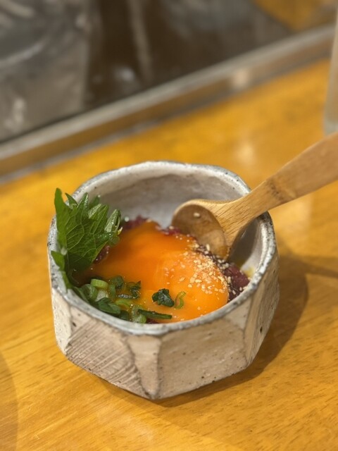 プチっと口の中で弾け、トロっと濃厚な卵黄が広がる贅沢な希少部位。タレがしっかりときいたコクのある満足度高い逸品。