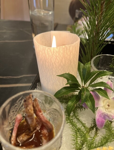 全て演出が楽しい!! 前菜8種が付いたわた飴で作るすき焼きのコース