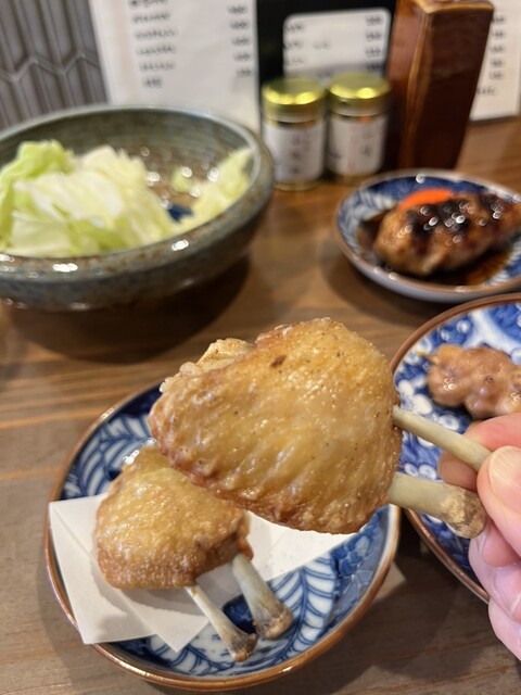 自家製ポテトサラダ、もものタタキ、ささみユッケ、カリカリ手羽先揚げ、つくね卵黄、せせり、ねぎま、梅ささみと頂き、最後は焼きおにぎり茶漬けでしめました