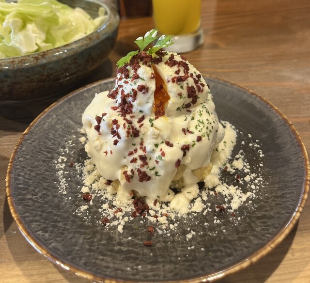 まず付き出しとサービスのキャベツ盛りが出てきます