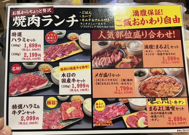 ランチタイムでのご利用、満腹!まるよしセットやハラミ&牛タンセットをお楽しみいただき、ご満足いただけたようで嬉しく拝見しました。人気部位をしっかり味わえる内容と、ボリューム感は新福島・福島エリアで焼肉ランチを楽しみたい方に好評をいただいております。