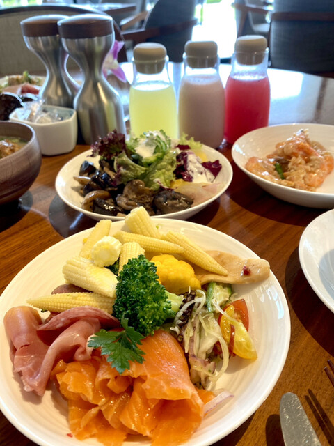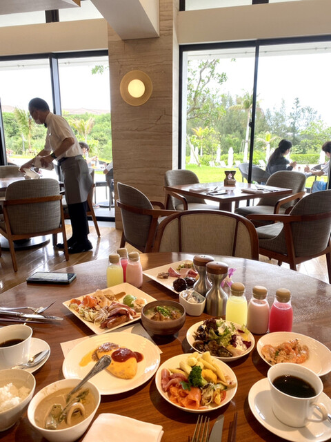 夜は夜で雰囲気ありますが、やはりココは朝食バイキングが素晴らしいです!全てのお料理に手抜きがなく、なんならサイド中のサイドメニューも美味しいです!フルーツのドリンクも見た目がカワイイだけではなく、フレッシュでサイズ感もサイコーで、何本でもイケます!お料理の種類が多いので、全てを食するのは不可能です^_^洋食系のみならず和食もソーキソバもあり、なんとグリーンカレーまでも!