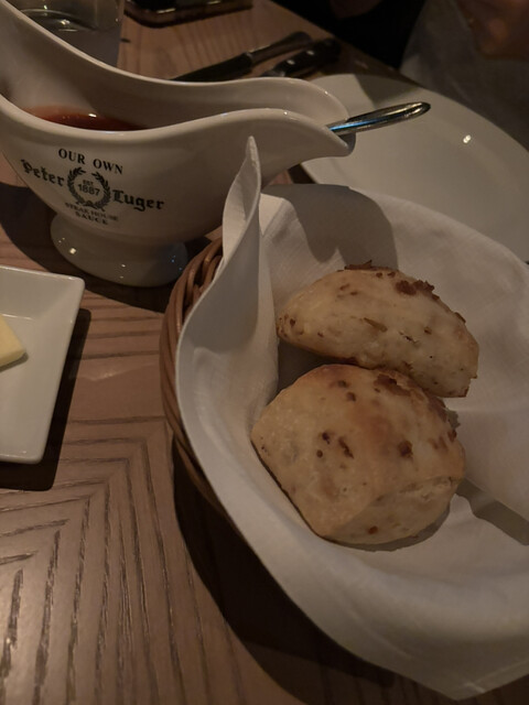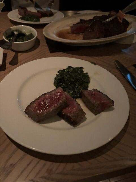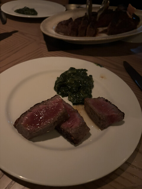 恵比寿のステーキハウス「ピータールーガー」に前日、食べログから予約して訪問。店内は高級感があり、特別な日にぴったりの雰囲気です。名物のTボーンステーキを2人前注文し、シーザーサラダとほうれん草ソテーを付け合わせに。ステーキは香ばしく焼き上げられ、肉の旨みが凝縮されていて絶品でした。2人で約5万円と高級ですが、満足度は高いです。帰りにTボーンの骨を持ち帰ることができ、自宅で煮込んでカレーにしたのも良い思い出になりました。