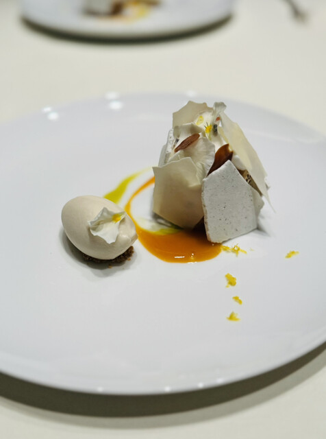 ココナッツの軽やかなムース、アプリコットのマリネと合わせ