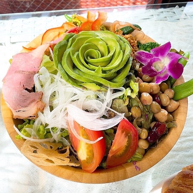 なんといってもこのサラダボウルのボリュームが圧巻。サラダボウルだけでお腹がいっぱいになるくらい野菜がたくさん。