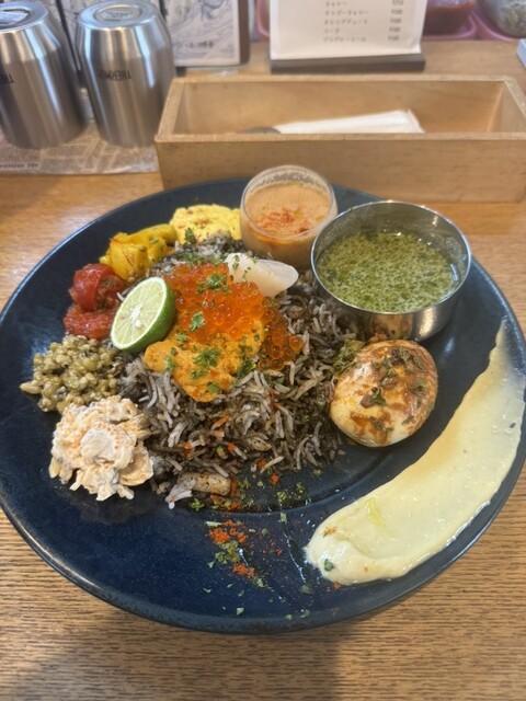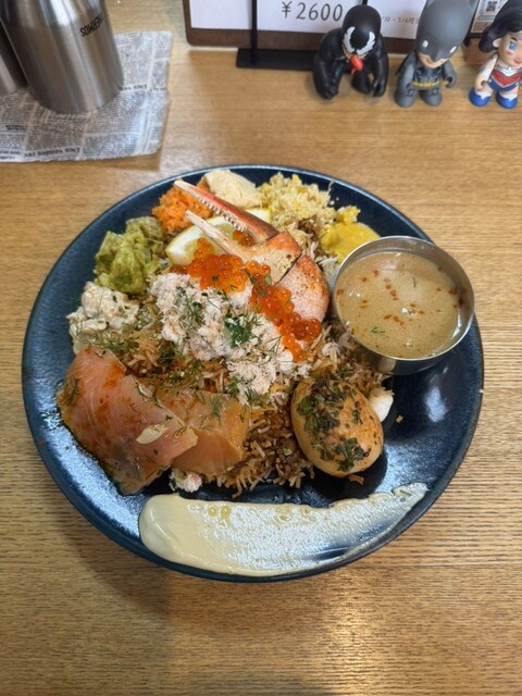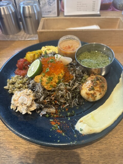海鮮ビリヤニプレートで、うにと燻製玉子を追加でトッピングを注文しました。