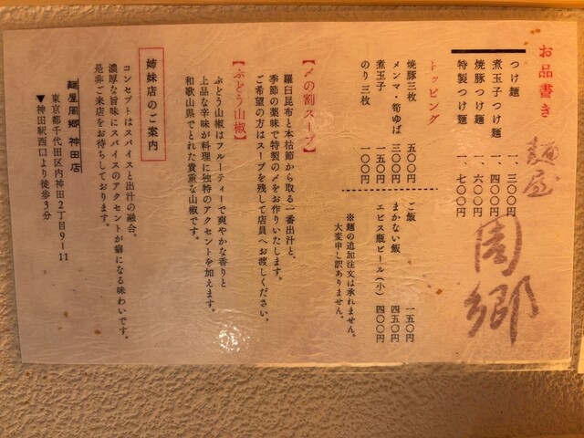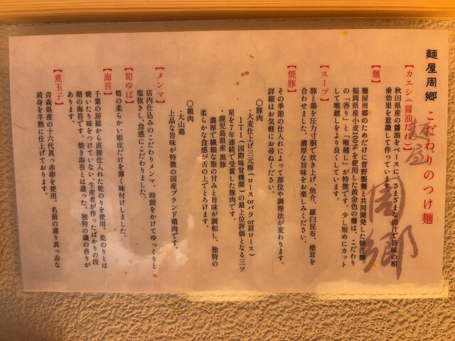 こちらは、小岩の人気店「麺屋 寿」閉店から約1年を経て、2021年6月にブラッシュアップして新橋の地に誕生した行列必至のつけ麺専門店『麺屋 周郷』