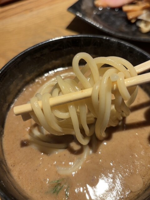 豚と鶏を圧力寸胴で炊き上げ、魚介、羅臼昆布、椎茸を合わせたドロドロ濃厚スープ。