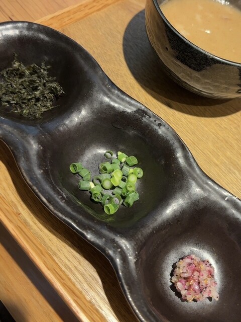 〆の具。具は日替わりで、この日は乾燥海苔?、刻みねぎ、ゆかりご飯。