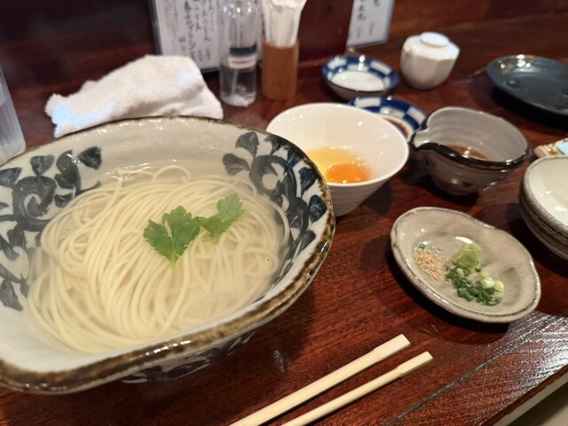 そして卵焼きは中身トロトロ、あっつい時に食べるがおすすめで国宝レベルです。ゴボてんはいつも通りの安定の味で、うどんは五島うどんが釜玉で食べられます。