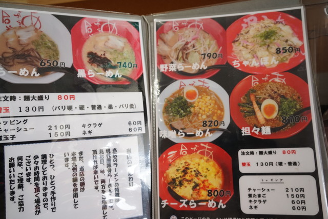 野菜らーめん・味噌らーめん・ちゃんぽん・担々麺・チーズらーめん