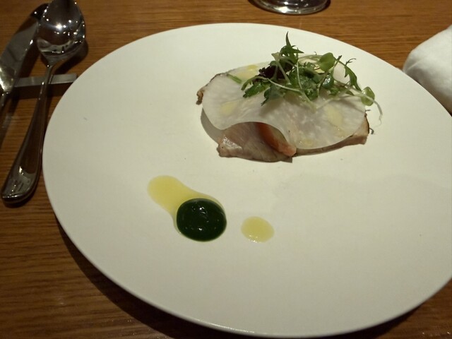 前菜のカルパッチョや、皮目がパリッと焼かれた魚料理も、火入れやソースの完成度が非常に高く、クラシックなフレンチの技を感じました。