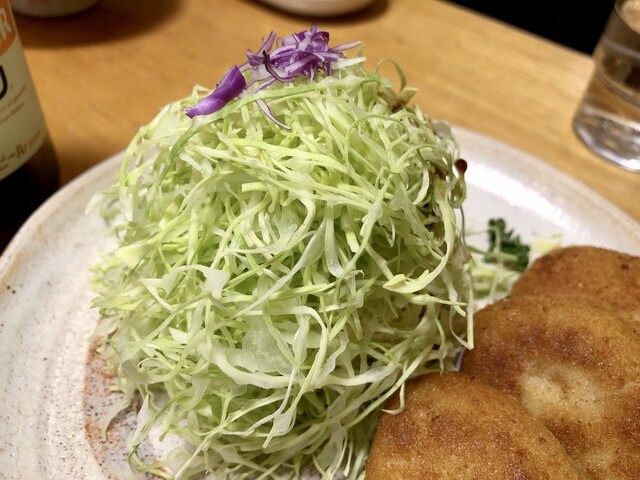 キャベツはシャキシャキで卓上のウスターソースで頂くと止まりません!