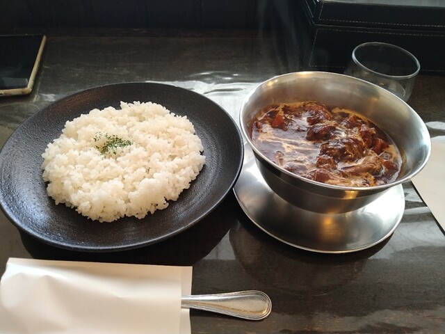 再度来たかったの。幸運です。直ぐに入れました。先ず車で来たか聞かれます。はい、徒歩です。チキンカレー中辛でお願いします。熱々、食べてても熱々、だんだん体温上がります。美味しくて、私の中ではNo.2のカレーです。