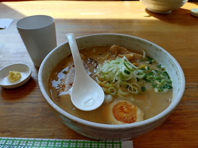 石狩方面に行き夫ちゃんが美味しいラーメン屋さんが有ると言う。で、調べたらまるたけさん。2人共に味噌ラーメンお願いします。マイルド味噌味、材木メンマにデカ厚トロチャーシュー、小ネギにネギに味玉ともやしが、入っています。別皿に生姜も頂き後から味変。キーマカレーも食べたいがそれは次会のお楽しみ。美味しいご馳走様でした。