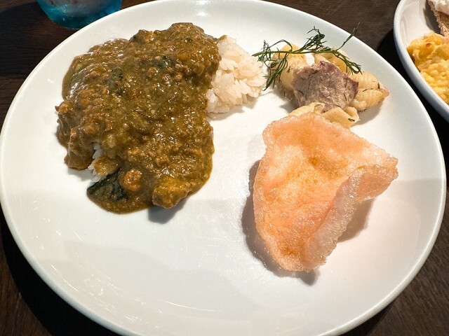 本物の小石と葉の中に食べられるパンとポテトチップが混ざっていて遊び心があり、味も美味しかった。
