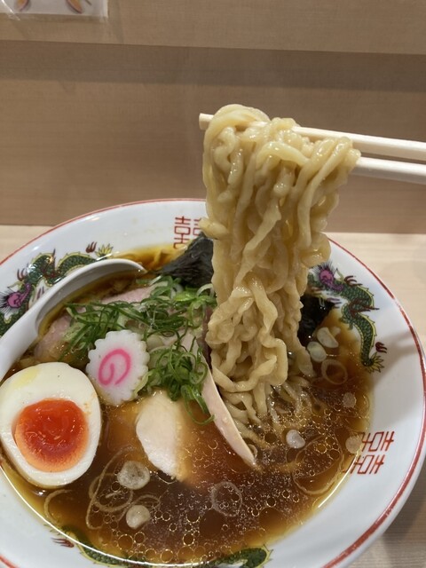 (スープ)優しい醤油の香りと塩味、その後に来る生姜の香りが合わさり完飲不可避です!