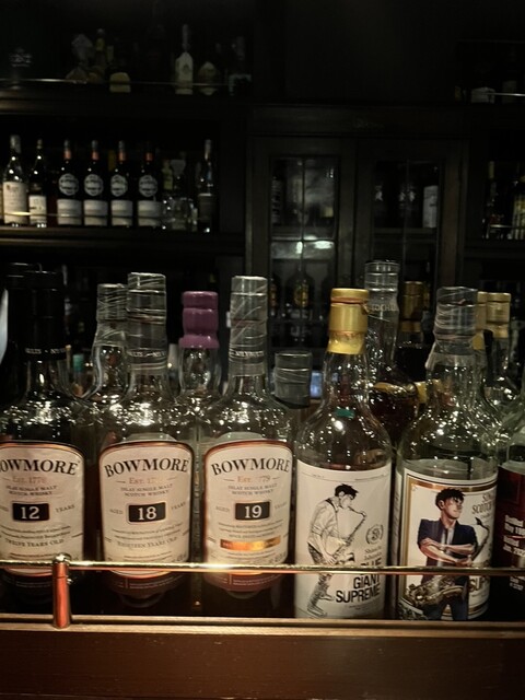ジン、六のボトルの中にわさびを漬け込んでます。