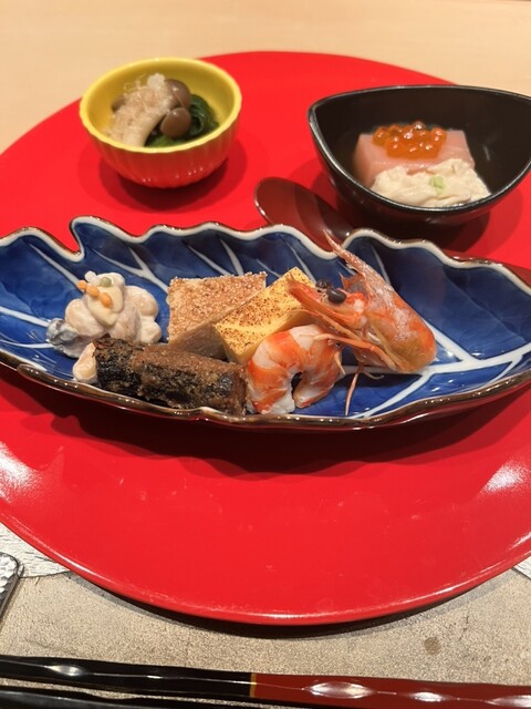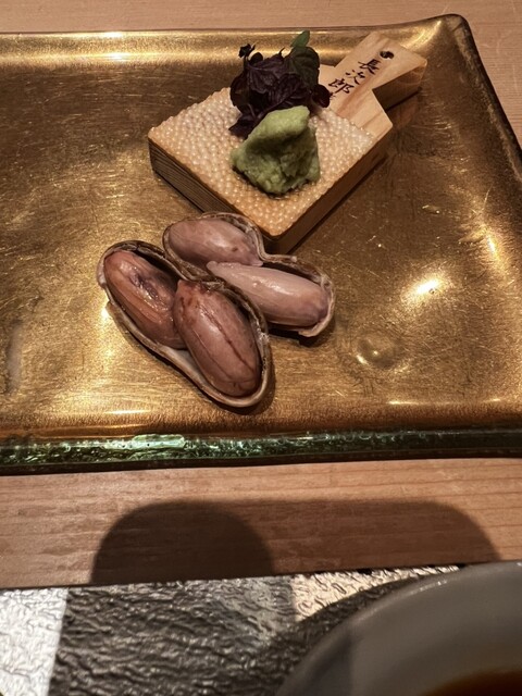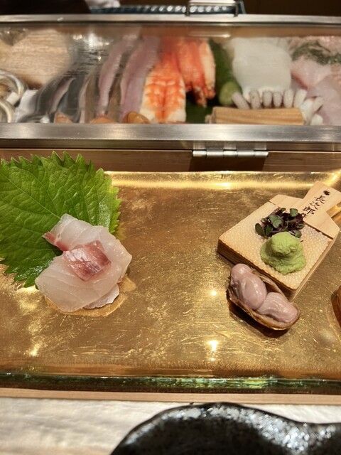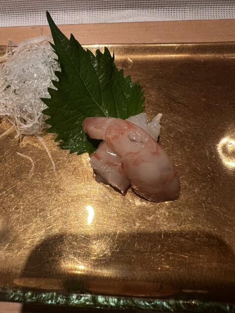 お造り 縞鯵、タコ、エビ、つぶ貝。