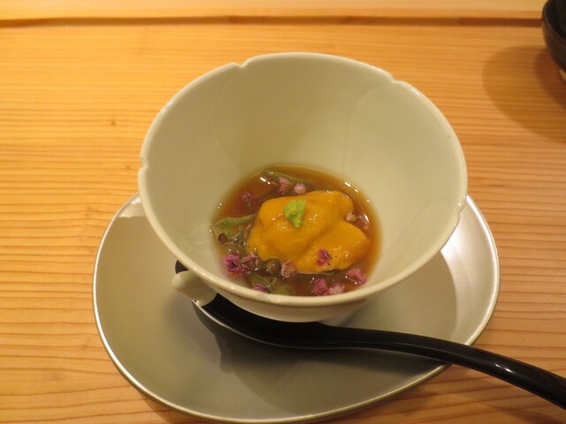 かに+昆布出汁ジュレ(+上ではなく、横に湯葉)くらいがいいのかもと思いました。