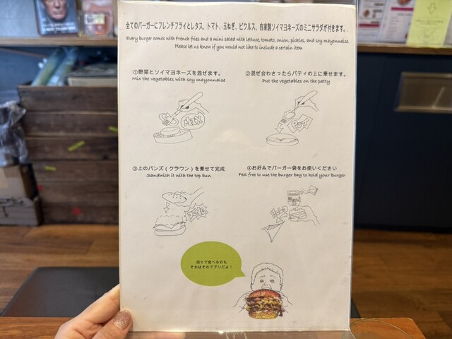 付け合わせのサラダはソイマヨネーズと混ぜてバーガーに乗せて自分でハンバーガーを完成させます