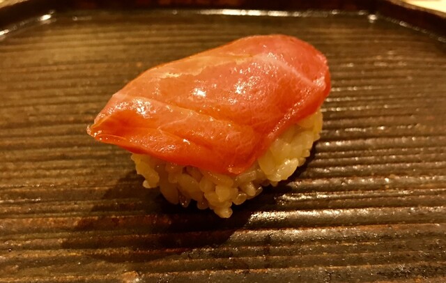 赤酢で握られたお鮨はいづれも感動する美味しさでただただ味わう事に集中した2時間でした。