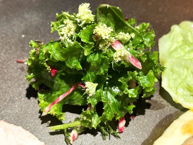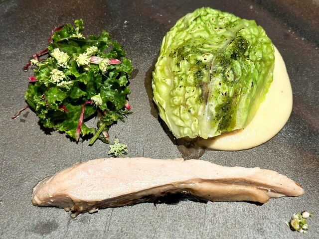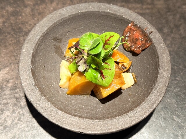 トマトの酸味やスプラウトの青い香り、金時草のほのかな苦みと相まって奥行きのある一皿に仕上がっており非常に美味しかったです!