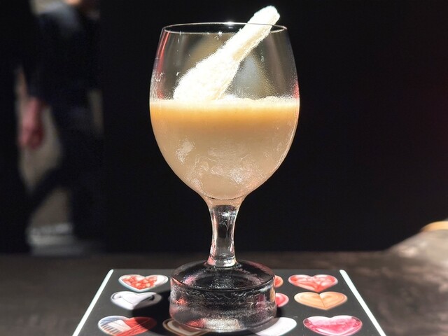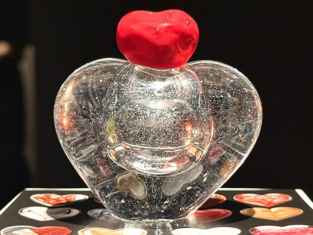 可食部位は器の上に盛られた「赤いハート」部分でパイナップル/ヨーグルトのジュースをカカオバターでコーティングしたものとなっていました