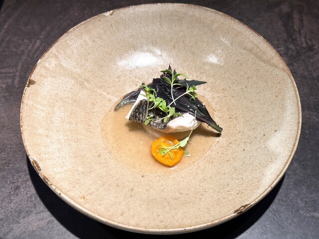 出汁はアサリや昆布で旨みたっぷりにとられており、そこに能登の魚醤であるいしるを少量加える事で日本的な旨みの重なりがしっかりと感じられる構成となっていました。