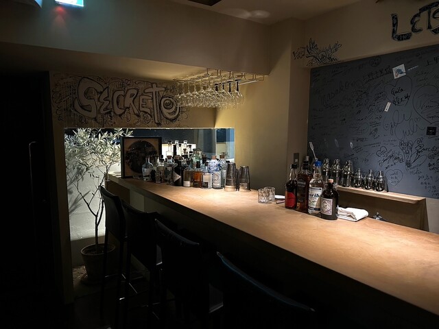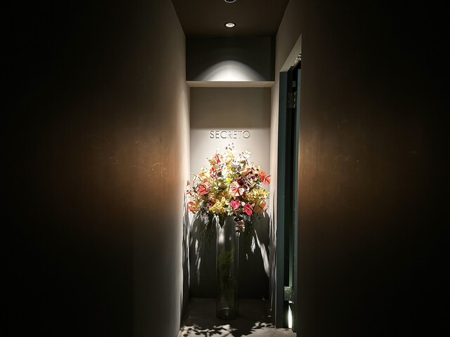 店内は入口入ってすぐがコースが始まる迄の待合/コース終了後のバーとなっており、全員が揃うと奥のコース会場へと案内される形式