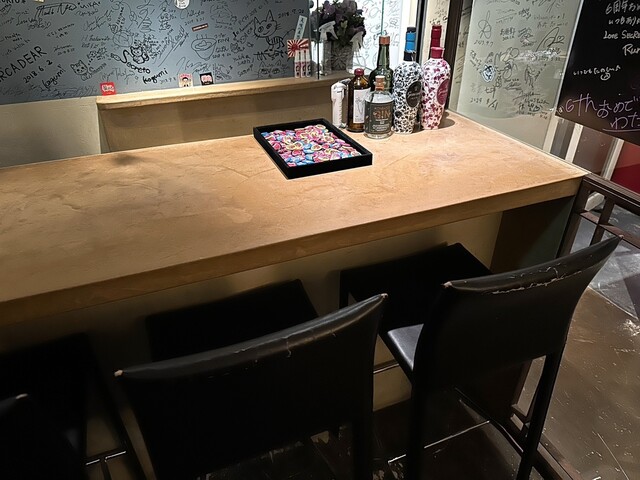 店内奥は黒を基調としたスタイリッシュで洗練された内観で、非日常感を感じる事ができる空間となっていました