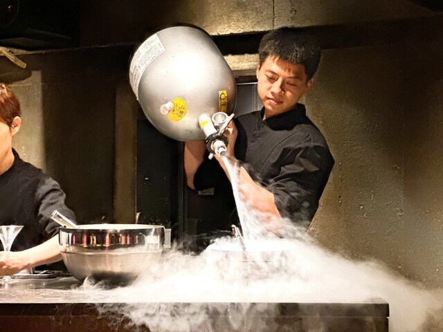 こちらは目の前で-196℃の液体窒素を用いて作ってくれる出来立てタイプとなっており、演出的にも目を見張ります