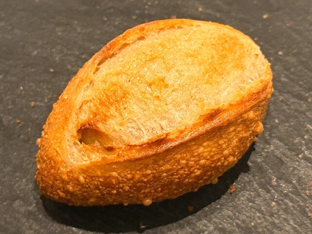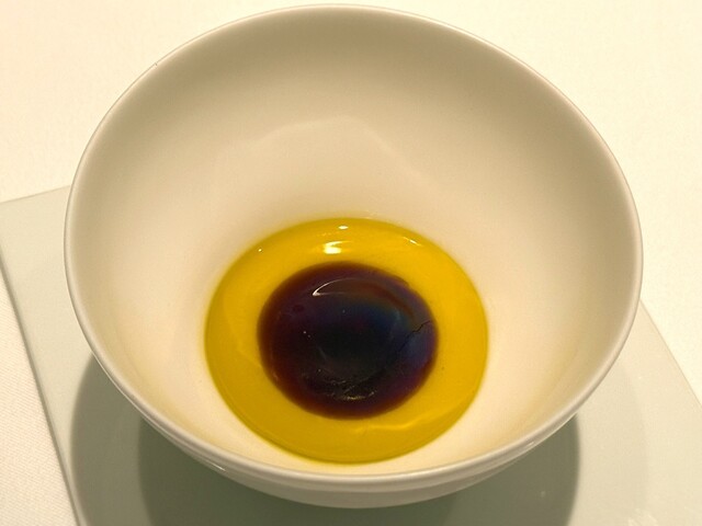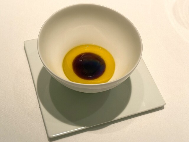最初にカカオの香ばしい香りが鼻腔を抜け、焼きナスのとろみと甘みが広がり最後にはフォアグラの濃厚なコクとまろやかさの余韻がグッと残り続ける3段構成の仕立てとなっておりとても美味しかったです!