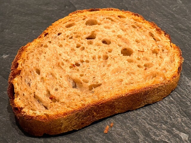 下層のタルトフランベはカリカリというよりはもちもちとした水分感をあえて残した仕立てとなっており、口の中で広がるじんわりとした小麦の甘みとバターの香ばしさが心地良いイメージ
