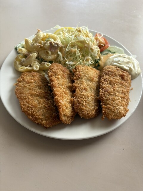 アジフライ定食で〆アジは半身が4枚身がふわふわで美味しい♡
