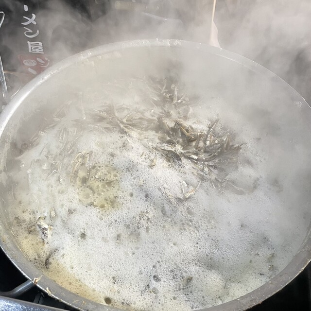 食べたのは塩ラーメンですが、店主のジョンさんが仕込み中の濃厚煮干スープを見せてくれました。
