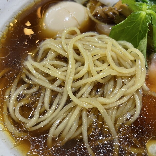 透き通った黄金色の煮干しベースのスープは、煮干のえぐみも雑味も一切ない優しいお味。