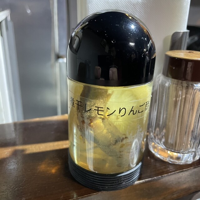 卓上の煮干レモンりんご酢をかけて濃厚な煮干しスープを中和して最後の一滴までスープを堪能しました。