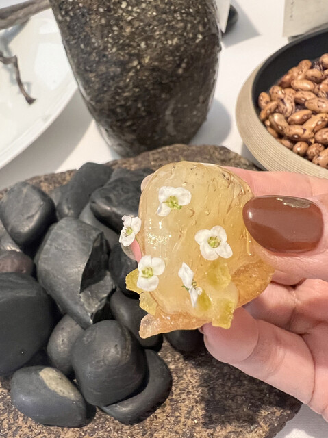 ニラの香りのする花や、ナスタチウムのエディブルフラワーと 複雑な味なのに、キチンとまとまる不思議