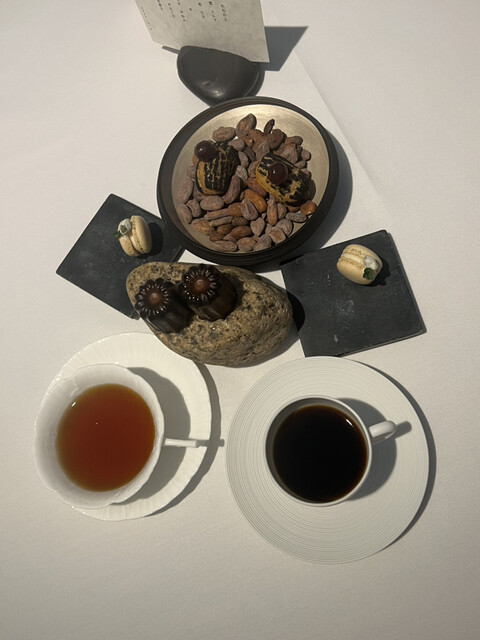 お茶菓子は アメリカンチェリーの中にヘーゼルナッツのチョコ?入ったの